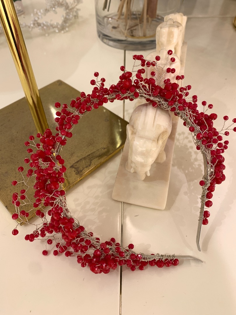 Kina crown model with tiny red crystal stones on it