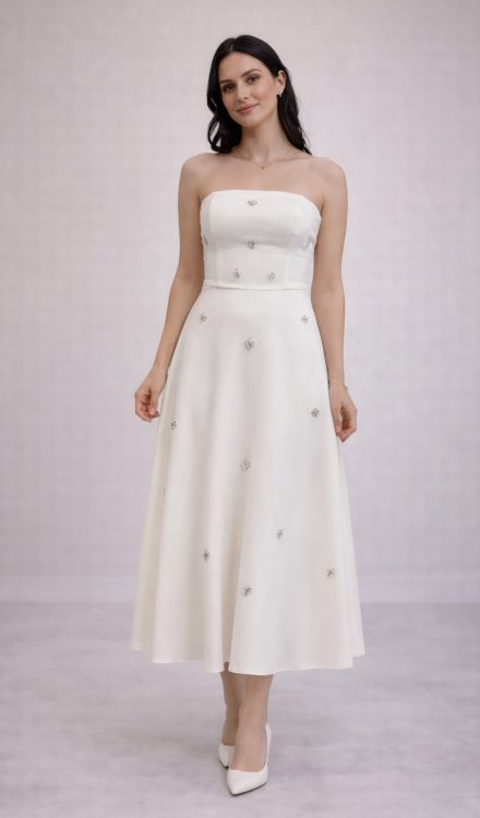 RTNC – Isabel – Beyaz midi elbise