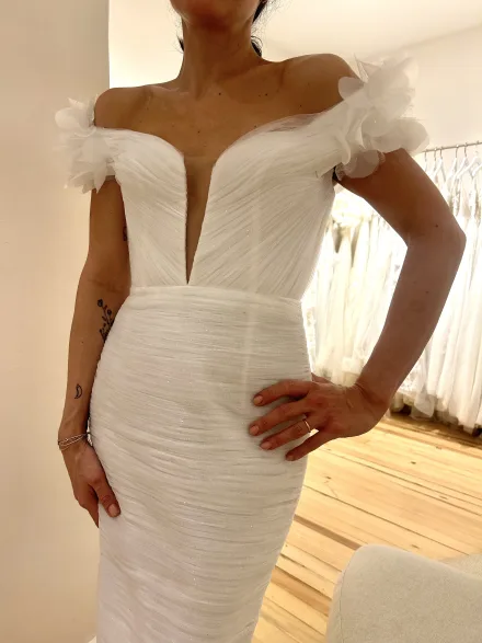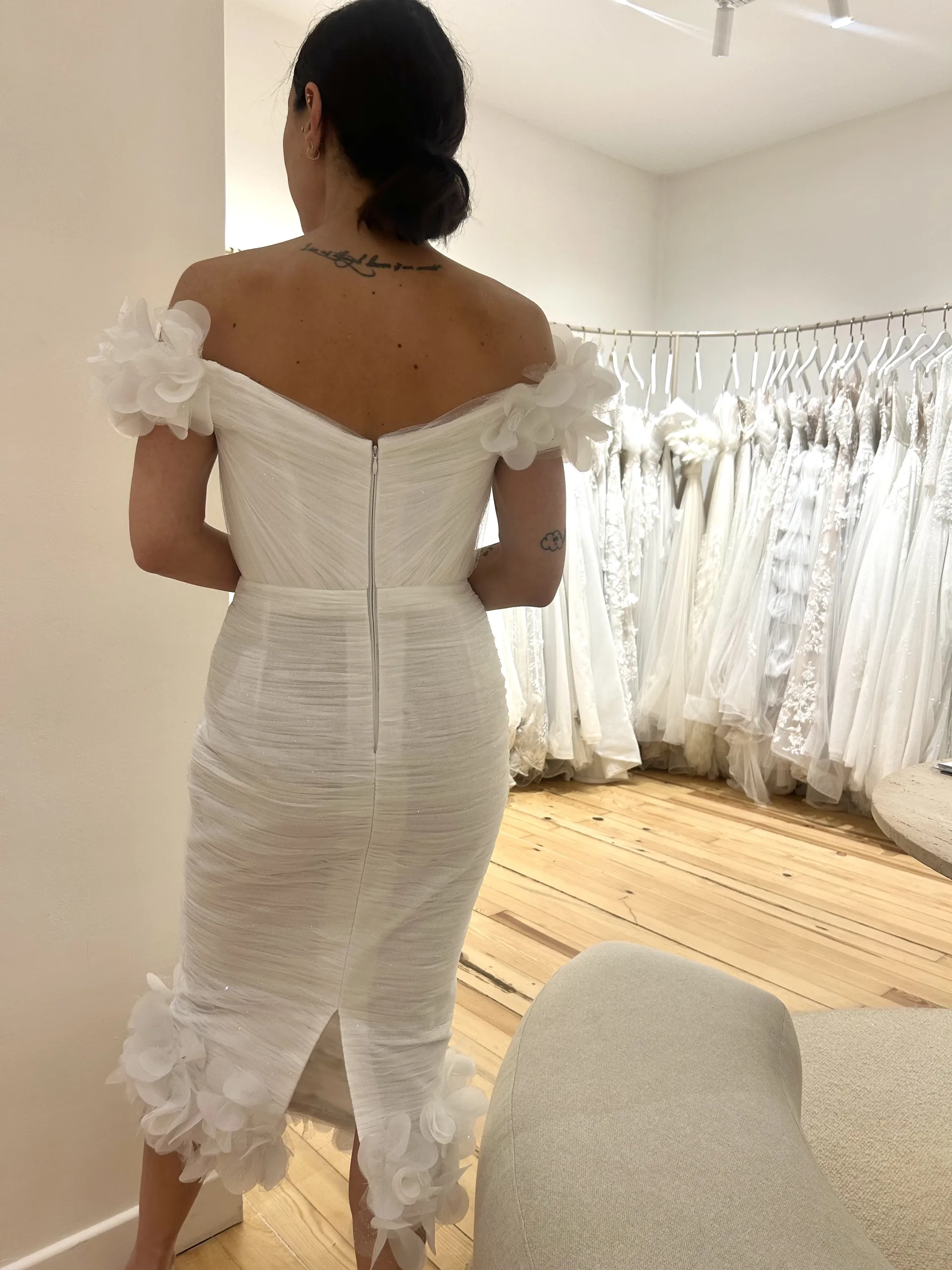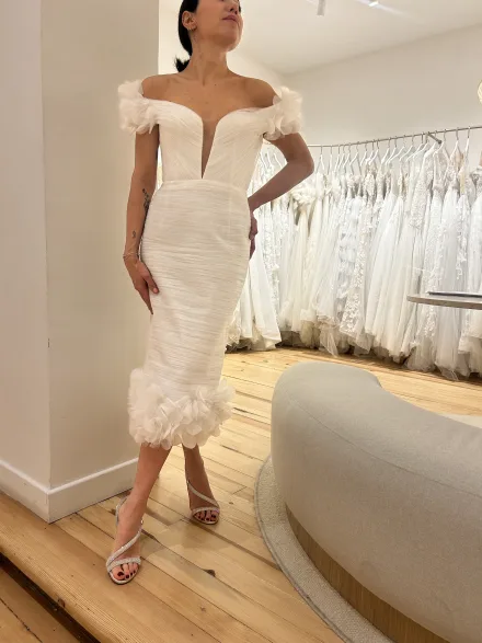 Ürün Özellikleri | Düşük omuzlu, Kalem etekli , 3D çiçek işlemeli |