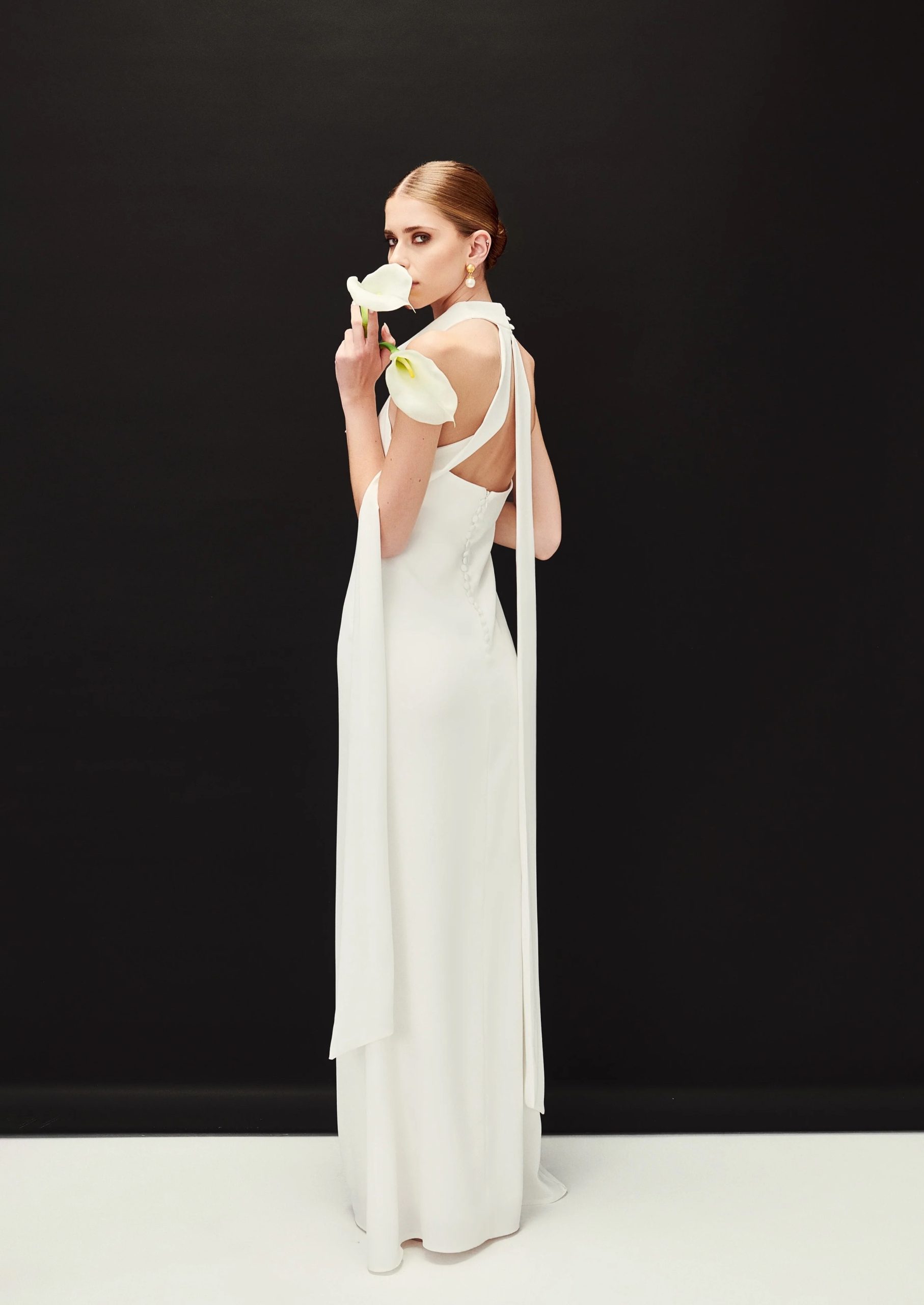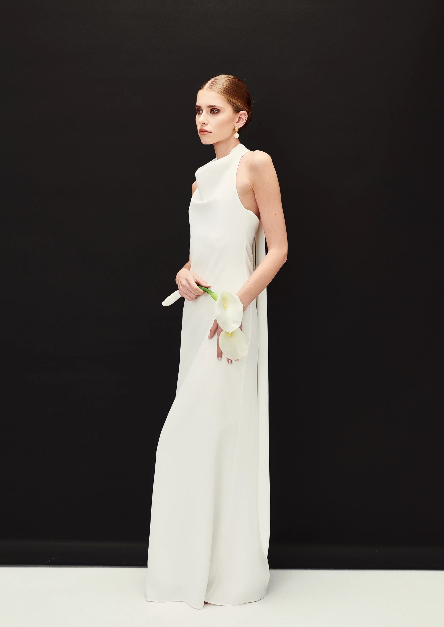 Labarin Studio markasına ait halter yakalı beyaz elbise