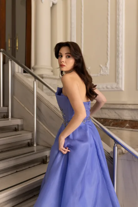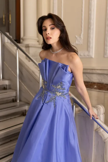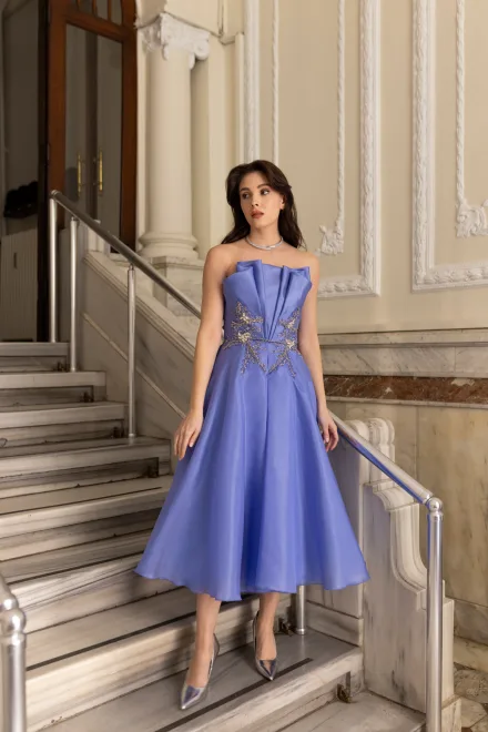 Ürün Özellikler Straplez , Midi boy , Sırtı fermuarlı ,Organze kumaş