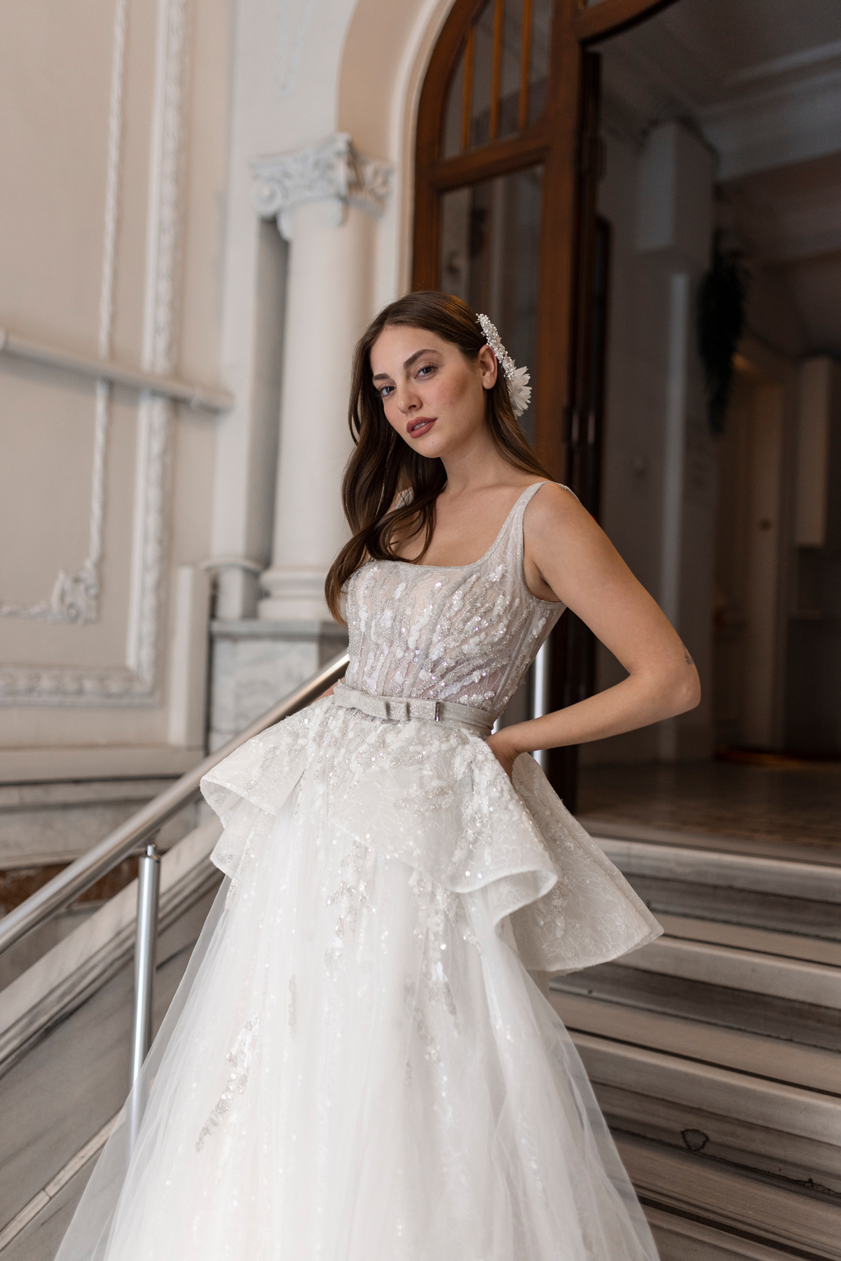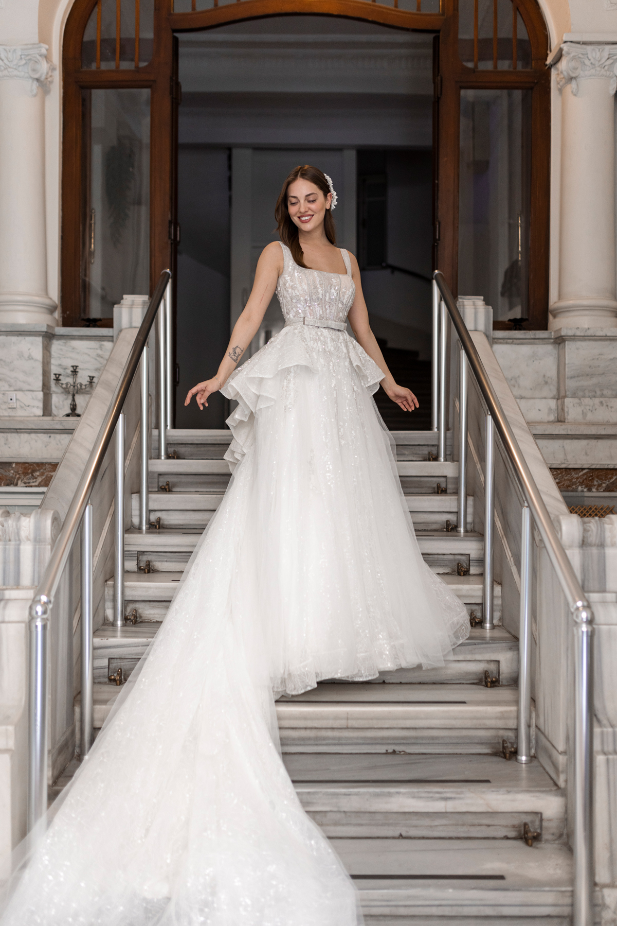 Milla Nova Markasına ait demonte etekli Mandy modeli gelinlik