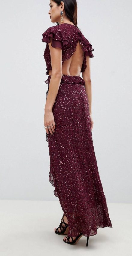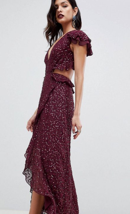 Yırtmaçlı, payet kumaşlı tasarım elbise