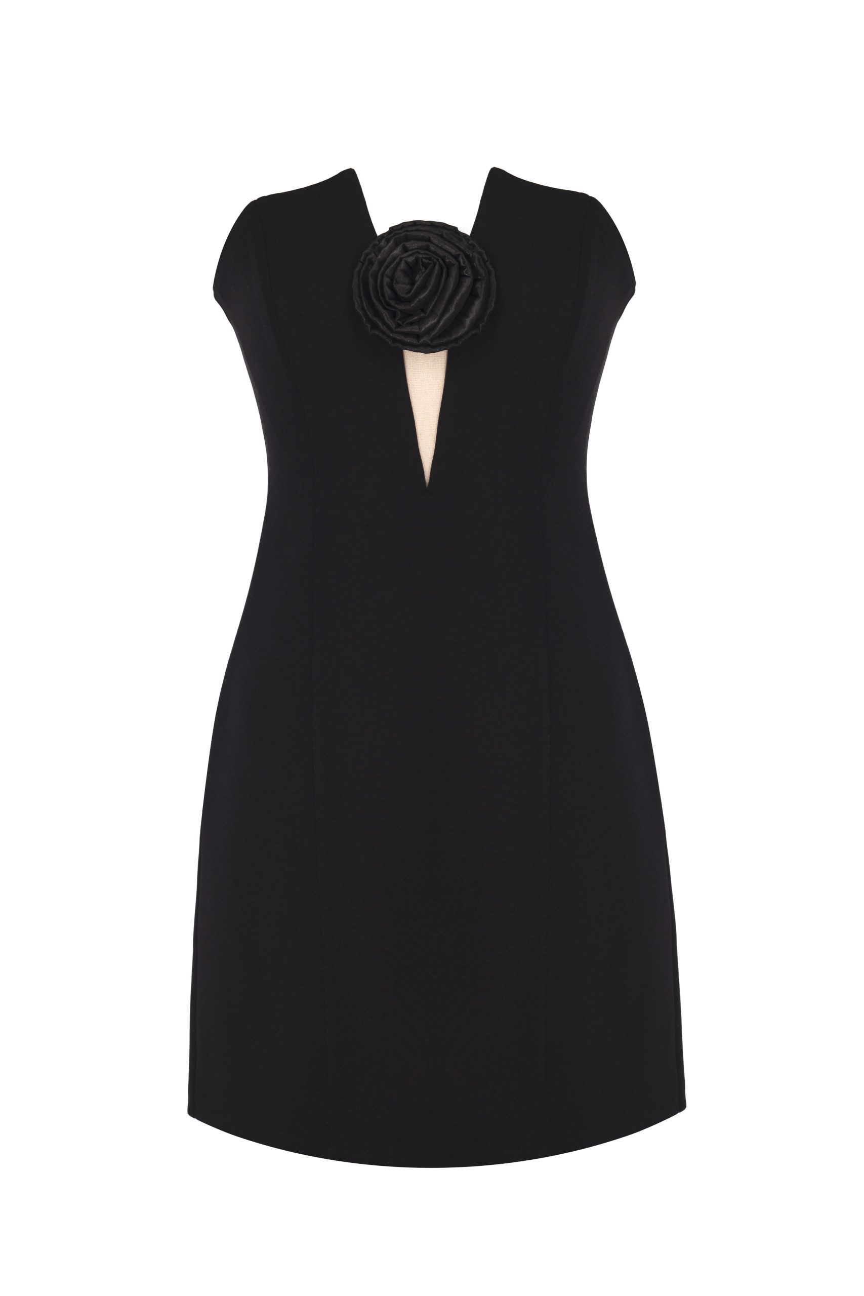 Krep kumaşlı , gül aksesuarlı mini elbise